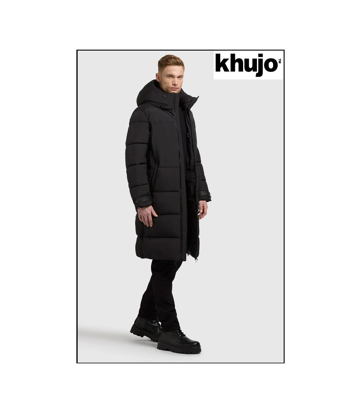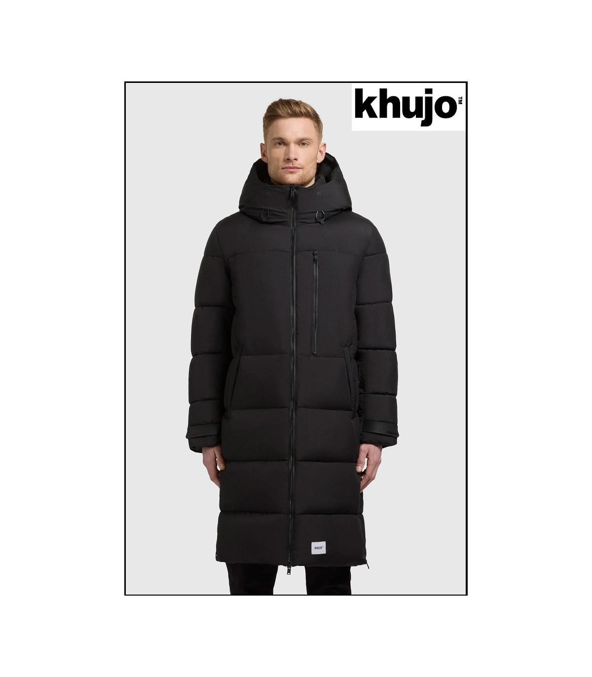 Capucha de cierre alto con cordón. Cremallera de dos vías aberturas laterales con cremallera. Cremalleras con revestimiento repelente al agua con correa de transporte integrada. Puños elásticos en el forro de las mangas. Bolsillos con cremallera y forro polar. Pecho, manga y bolsillo interior.