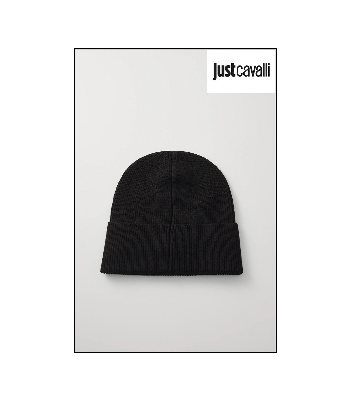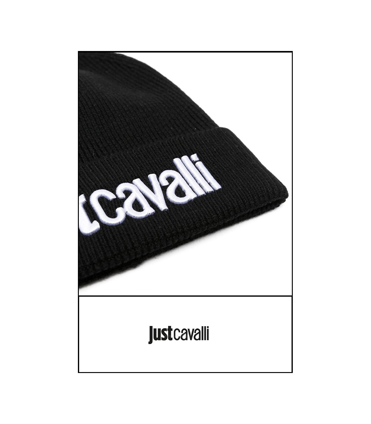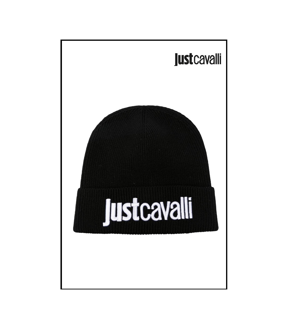 GORRO NEGRO UNISEX CON LOGO BLANCO BORDADO DE JUST CAVALLI.