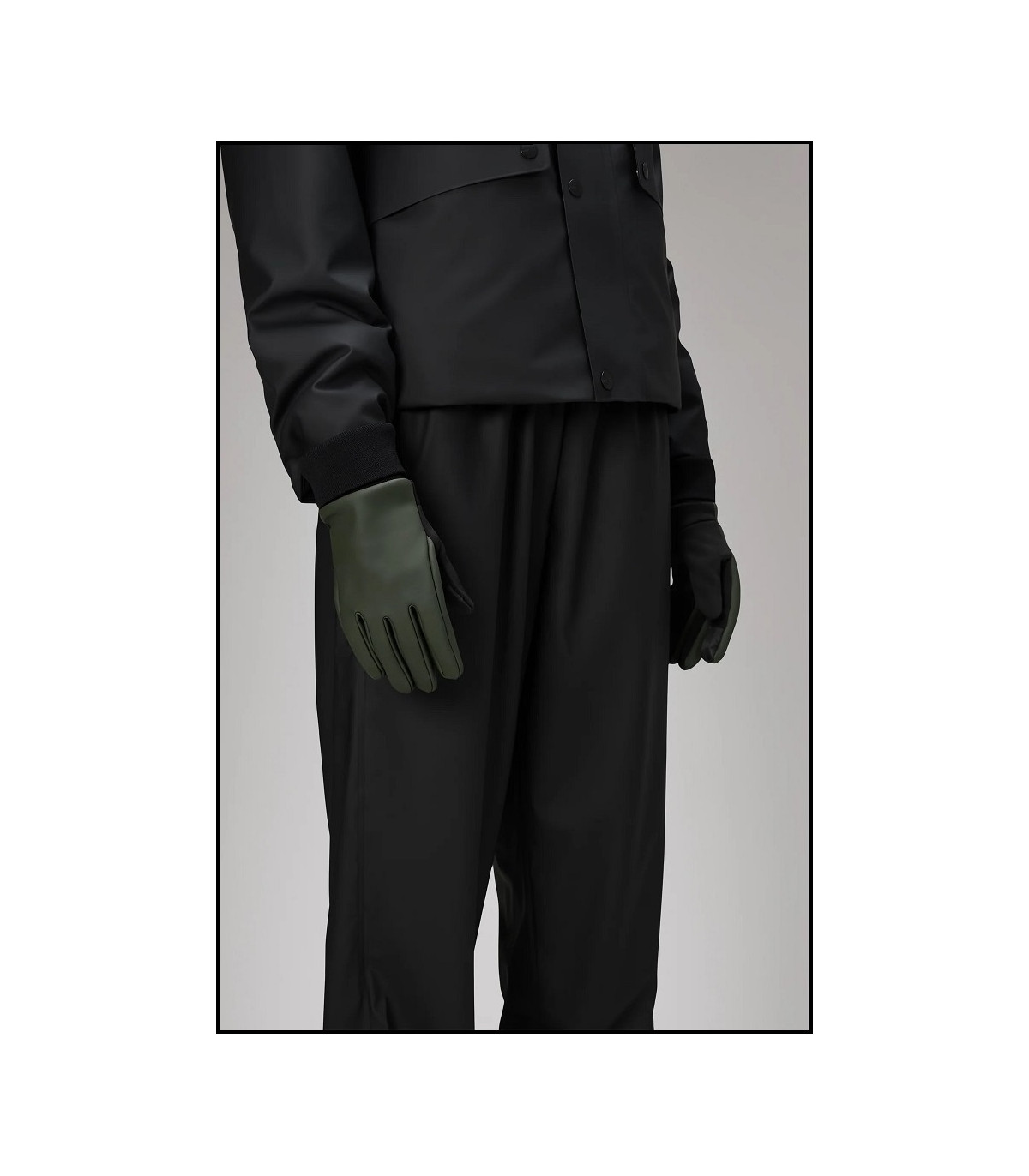 Gloves son un accesorio aislante de estética limpia que mantiene las manos calientes y secas en condiciones de lluvia y frío.