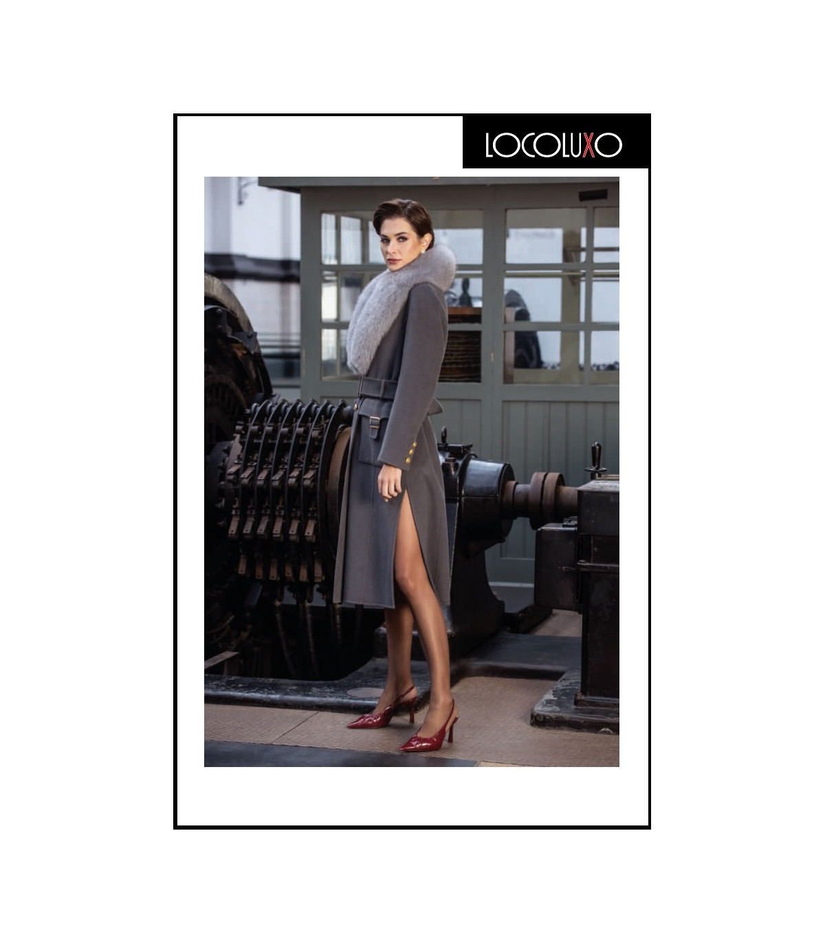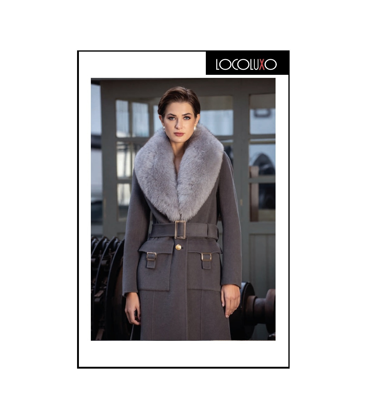 Este abrigo gris oscuro de corte midi firmado por Loco Luxo es una prenda de lujo pensada para mujeres que buscan elegancia, diseño y funcionalidad.