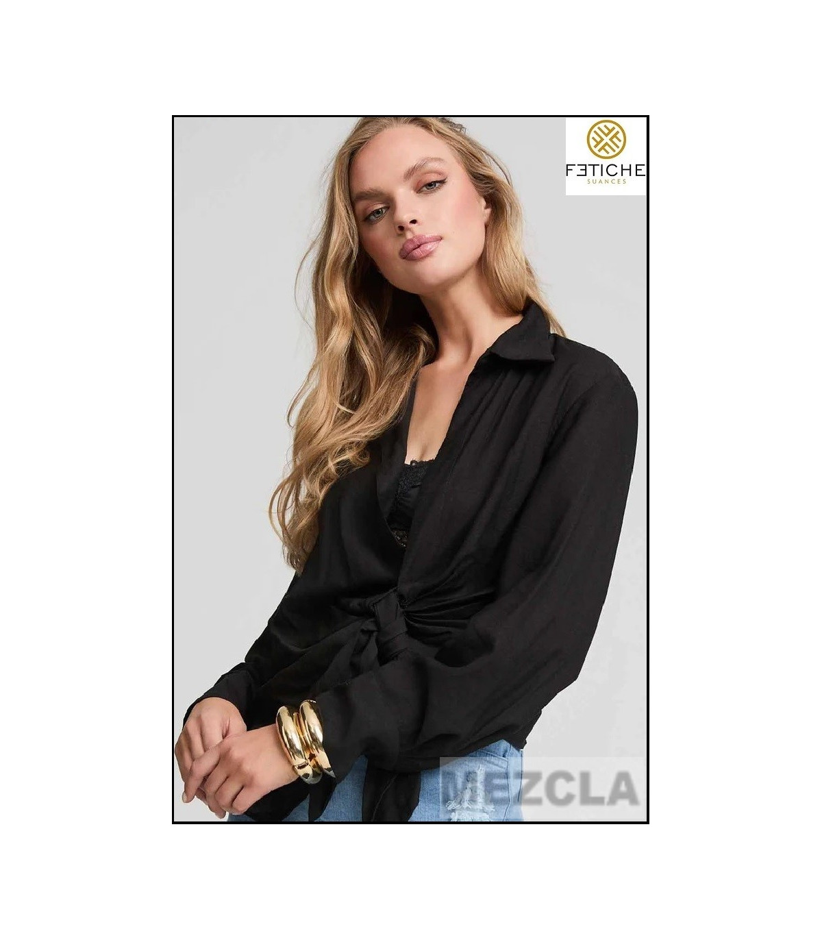 La Isadora Shirt de Fetiche Suances es una blusa negra elegante y versátil, perfecta para looks femeninos con estilo boho chic y sofisticación.