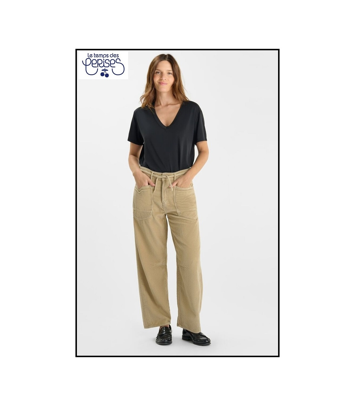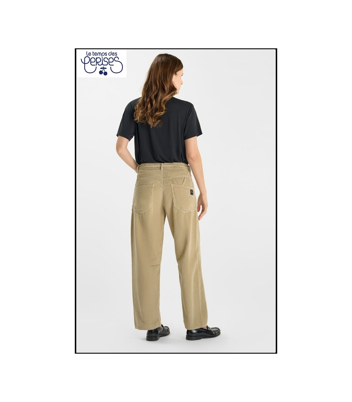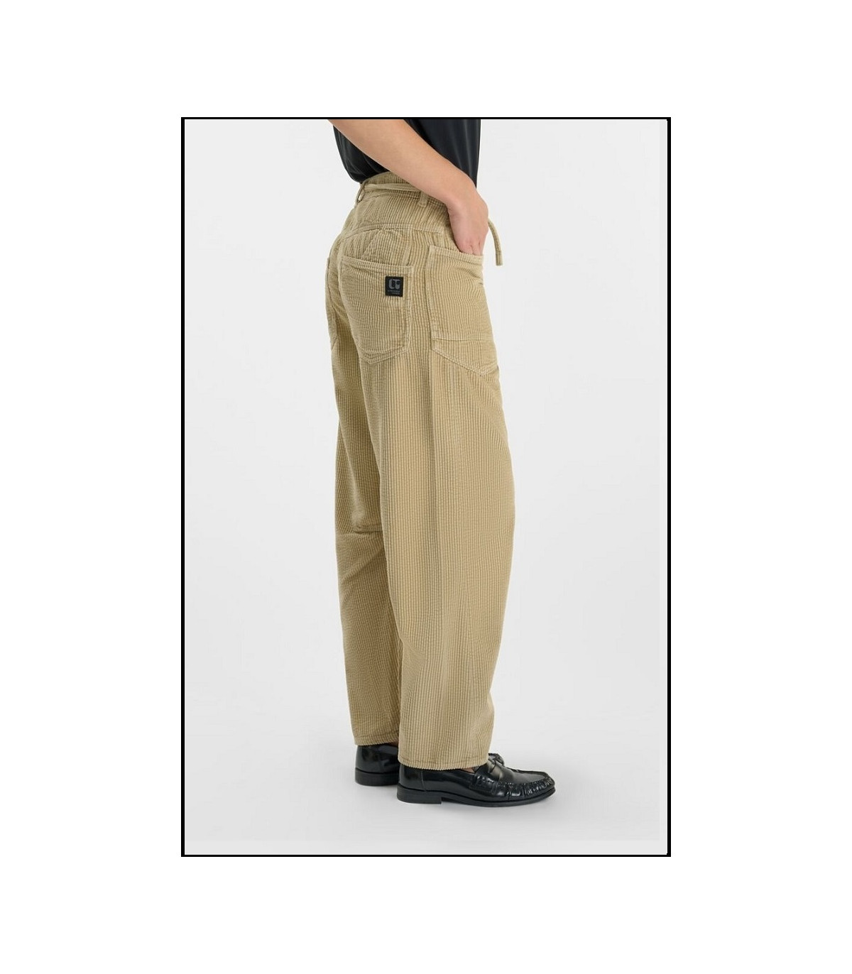 Pantalones de pana beige con corte holgado tipo globo y grandes bolsillos de parche. Cinturón extraíble.