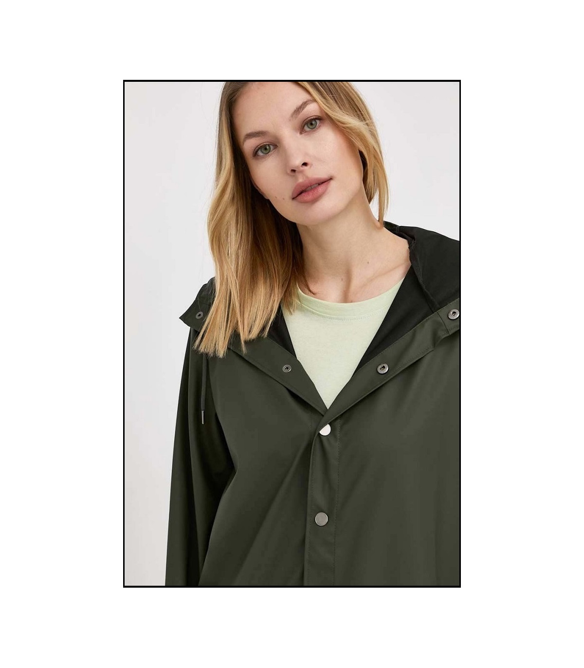 Jacket está confeccionada en el tejido de PU característico de Rains con costuras selladas. Su acabado es ligero y de tacto suave.