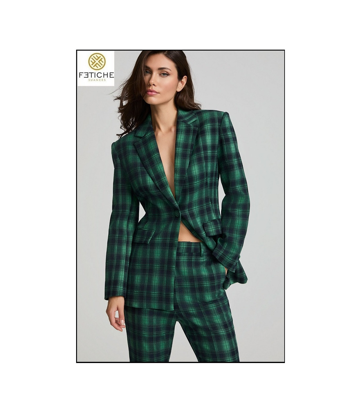 Traje de americana y pantalón de cuadros verdes “Folk & Soul”. Un conjunto que reinterpreta la sastrería clásica con el sello inconfundible de Fetiche Suances.