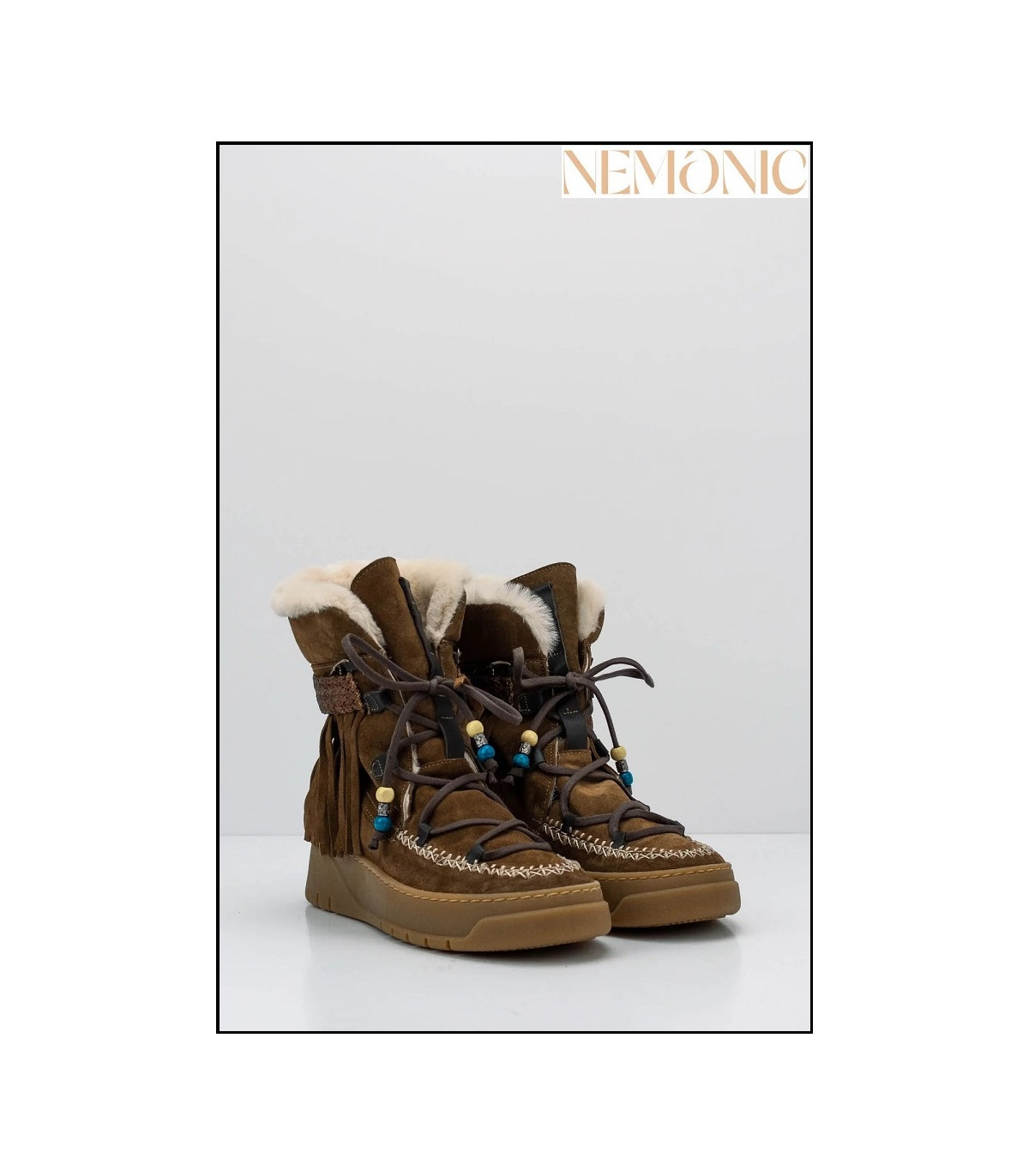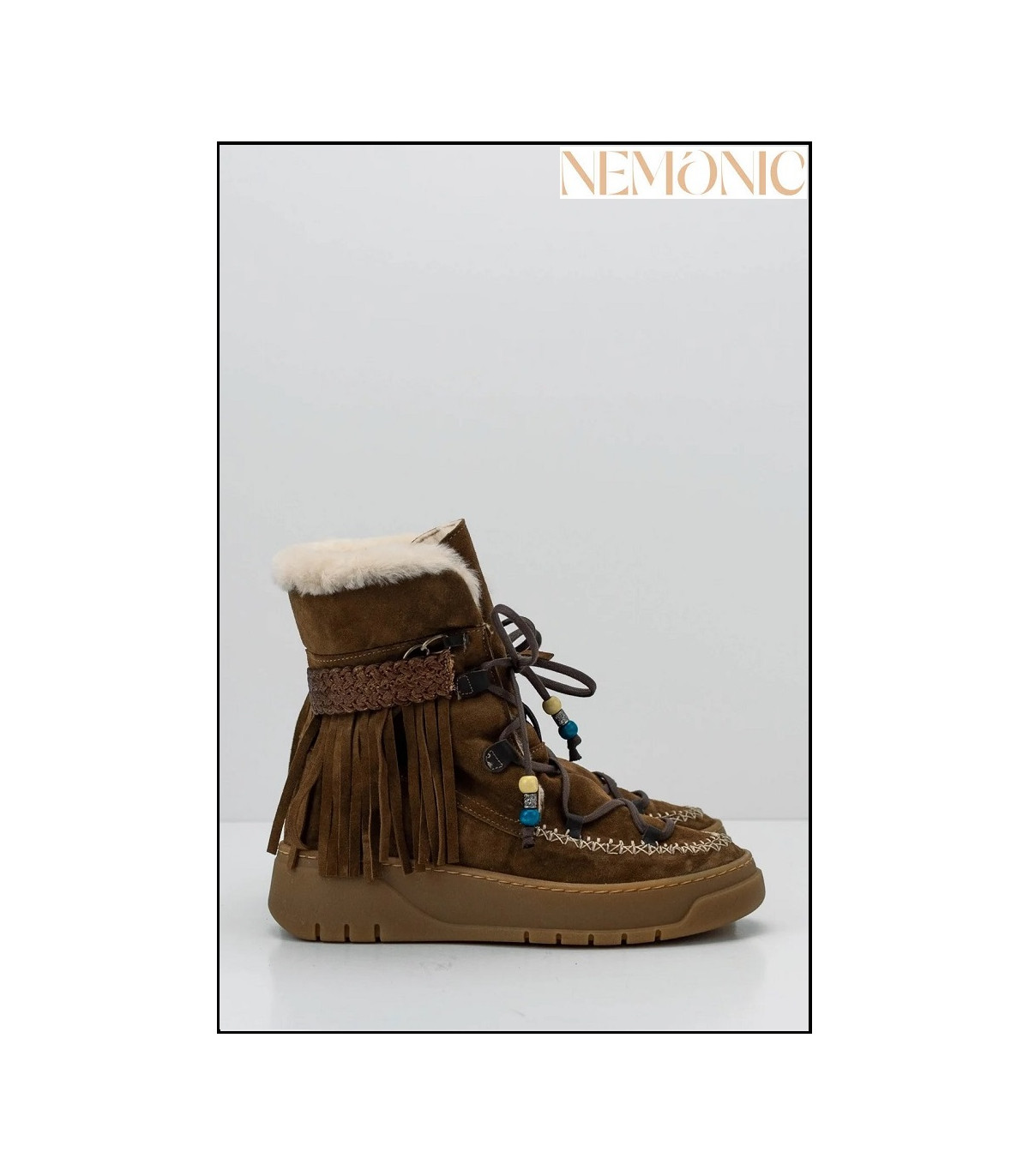 Botín Nemonic de serraje en color camel, con cálido interior de pelo natural de cabra.