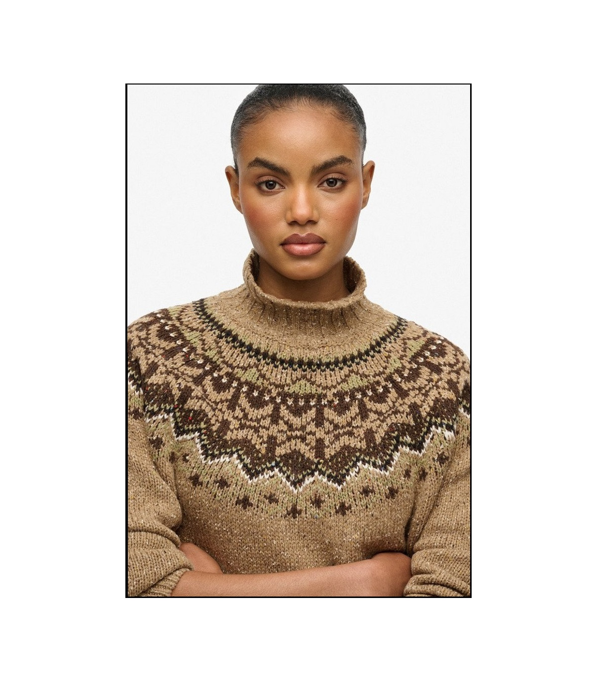 El jersey de cuello alto Fairisle es un básico atemporal para todo amante de la comodidad que se precie. Este jersey, diseñado por expertos con un elegante cuello alto y mangas raglán, crea una magnífica silueta, por lo que es fácil de llevar y combinar con otras prendas cuando llega el frío.