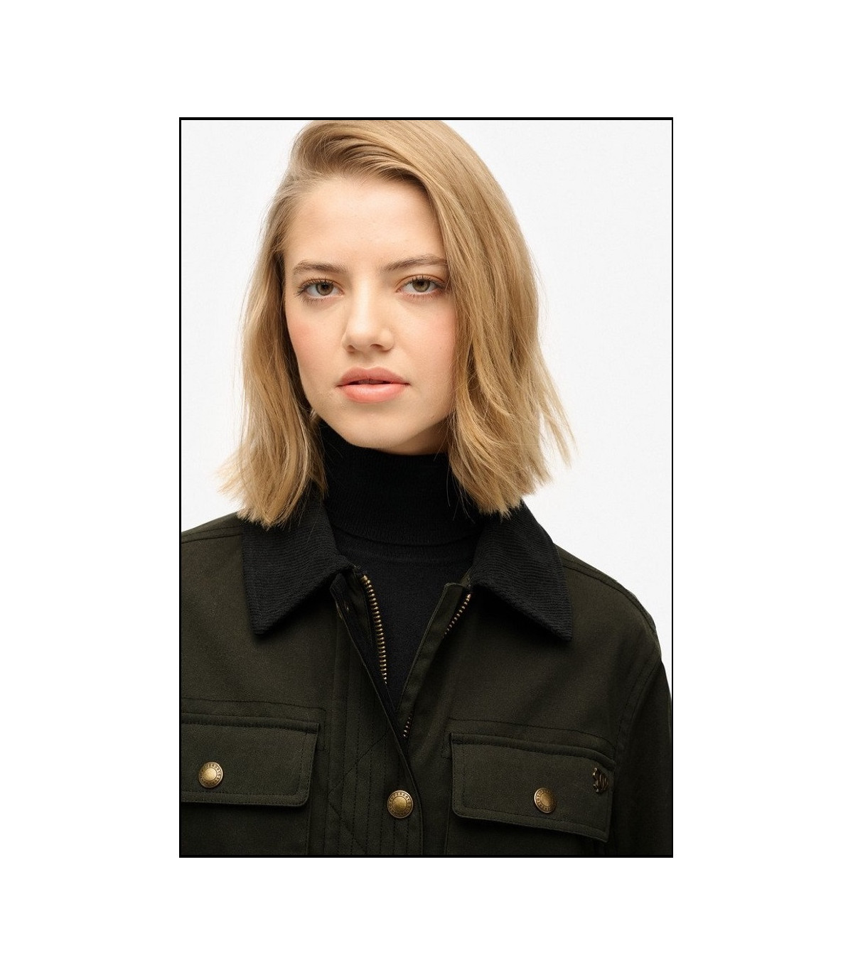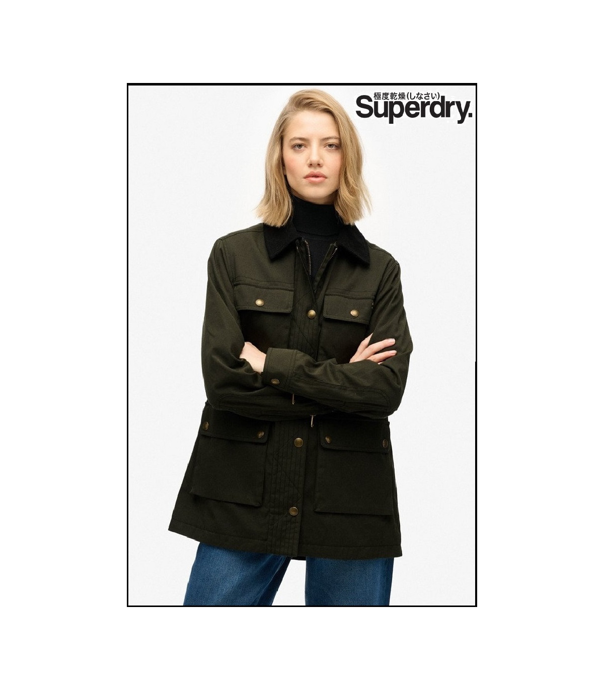 Corte entallado: diseño más ajustado al cuerpo para lucir un look más elegante. Cuello sencillo de canalé, cierre de cremallera y botón automático. Cuatro bolsillos exteriores y un bolsillo interior con cierre de botón automático. Puños con cierre de cremallera y botones automáticos, y cinturilla ajustable con botones automáticos. Etiqueta metálica de la marca en el pecho y la espalda.