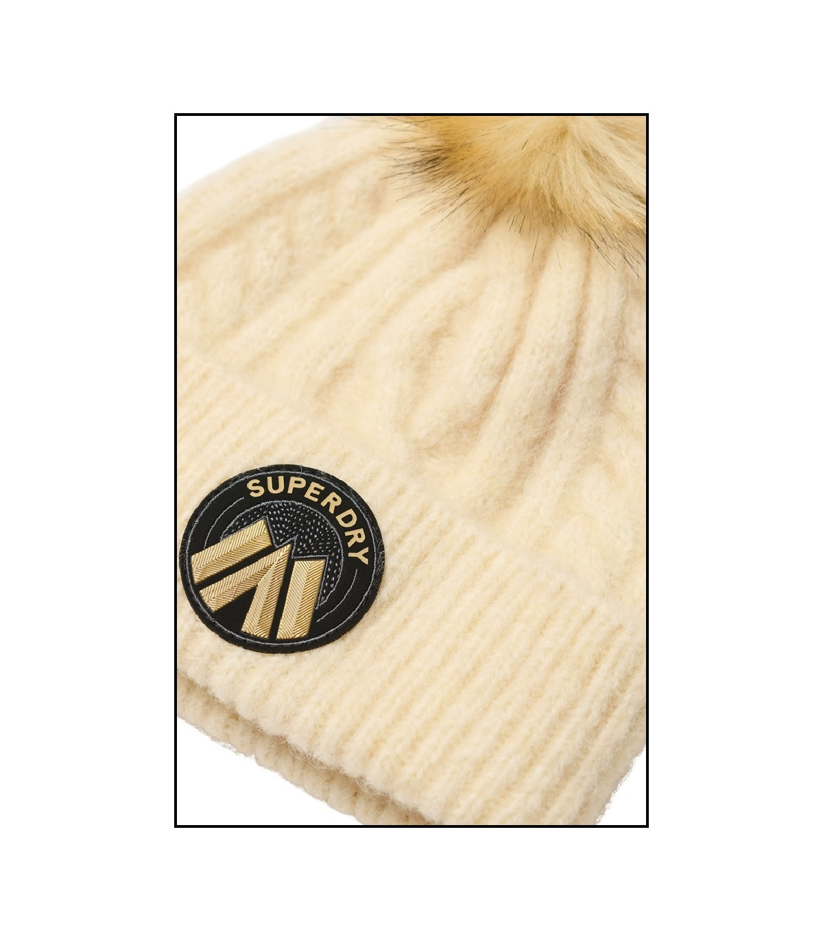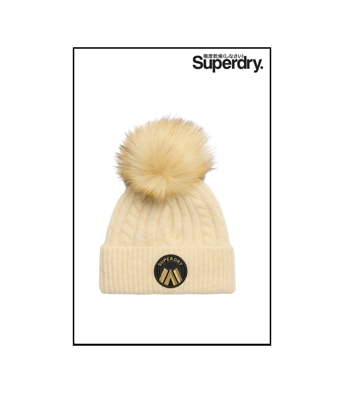 Gorro de diseño de punto trenzado. Textura suave. Mezcla de lana. Placa con el logotipo de Superdry.