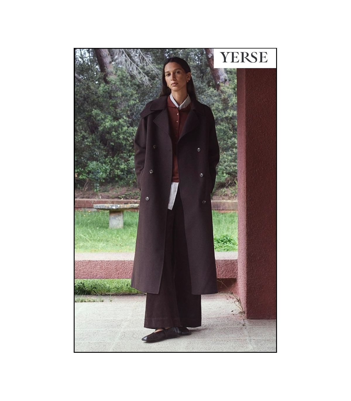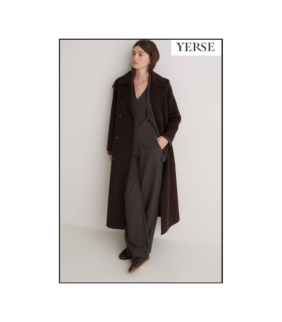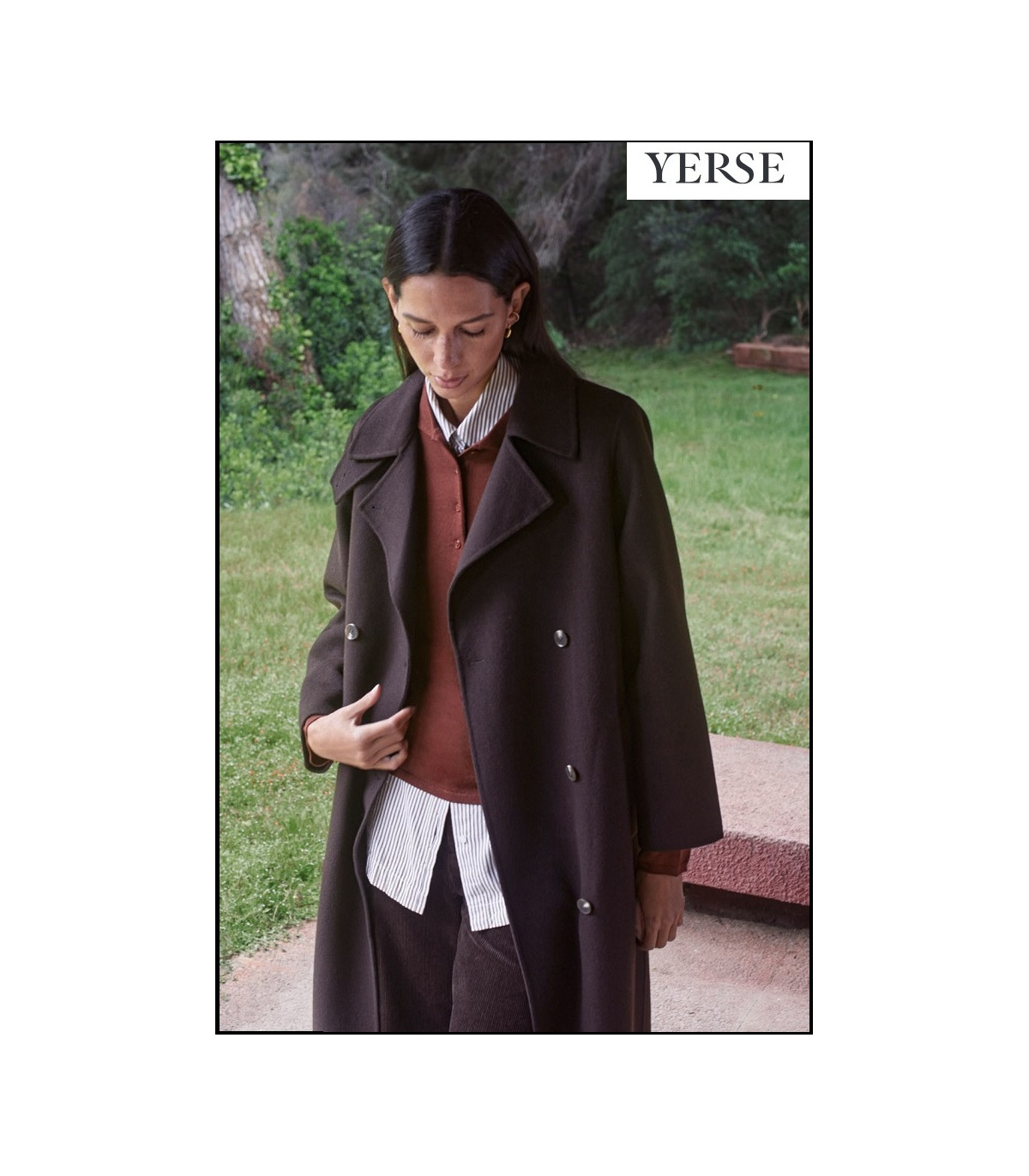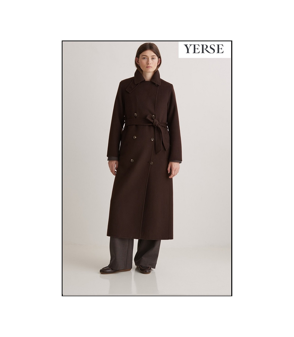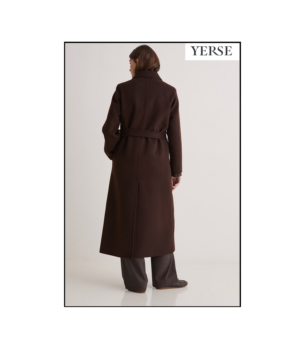 Abrigo largo handmade. Regular fit. Tejido doble faz mezcla de lana y fibras recicladas. Sin forro. Con cinturón anudable y extraíble. Abertura trasera. Cuello de solapa con tira y botón. Manga larga. Cierre con doble botonadura. Dos bolsillos laterales.